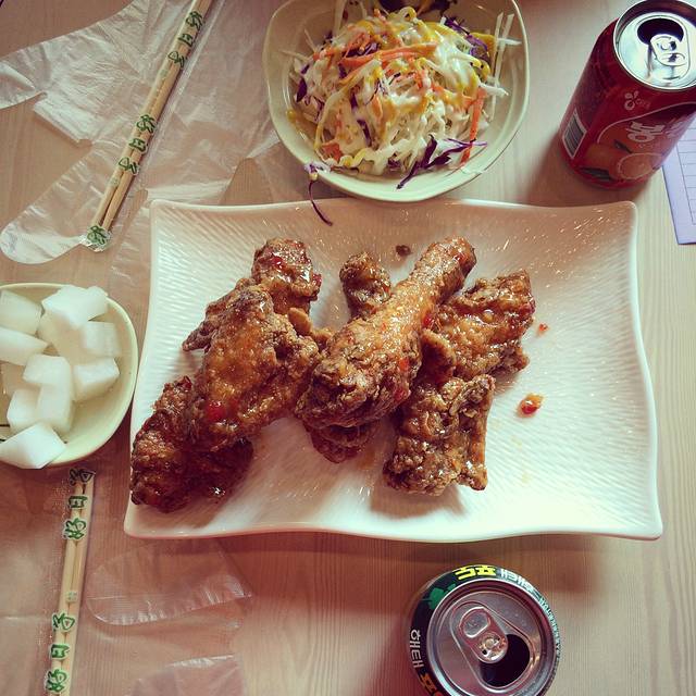 我们去了附近星数很高的韩国炸鸡店,S开头的,名字忘记了。真的蛮好吃的!!