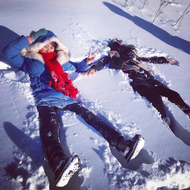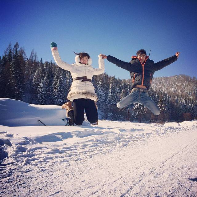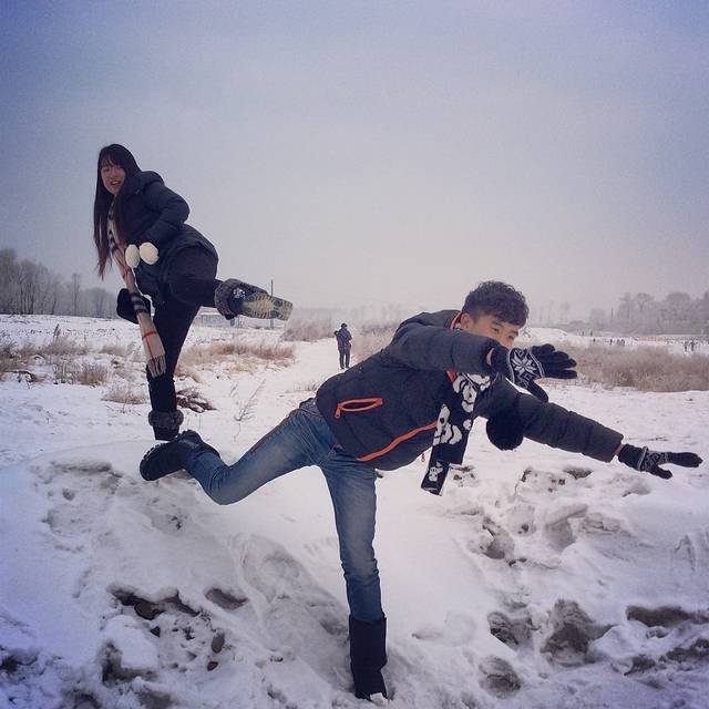 Ps,这样子的装备根本不需要暖宝宝,每次穿衣服都费我九牛二虎之力,热的啊,出门感觉不会热也不会冷。千万不要为了美丽不穿防风的裤子,因为我确实说不冷,但是因为我穿了羽绒裤,笑笑穿了淘宝买的加厚裤子就不防风,她冷。建议亲们买防风裤子。如果不想像我们一样作的话,可以直接买一套滑雪服。