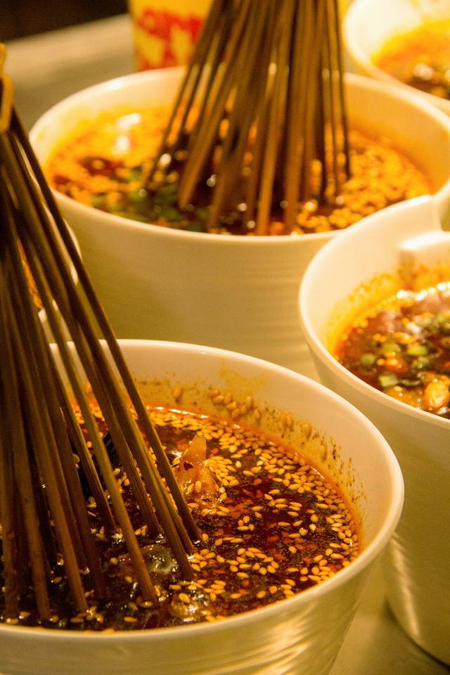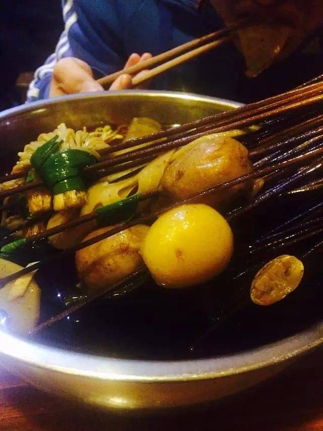 洗完澡,看了个电影,竟然没出息又饿了!没想到出酒店不到300米的老街巷,竟然有家超级好吃的串串,成都之行的又一惊喜。