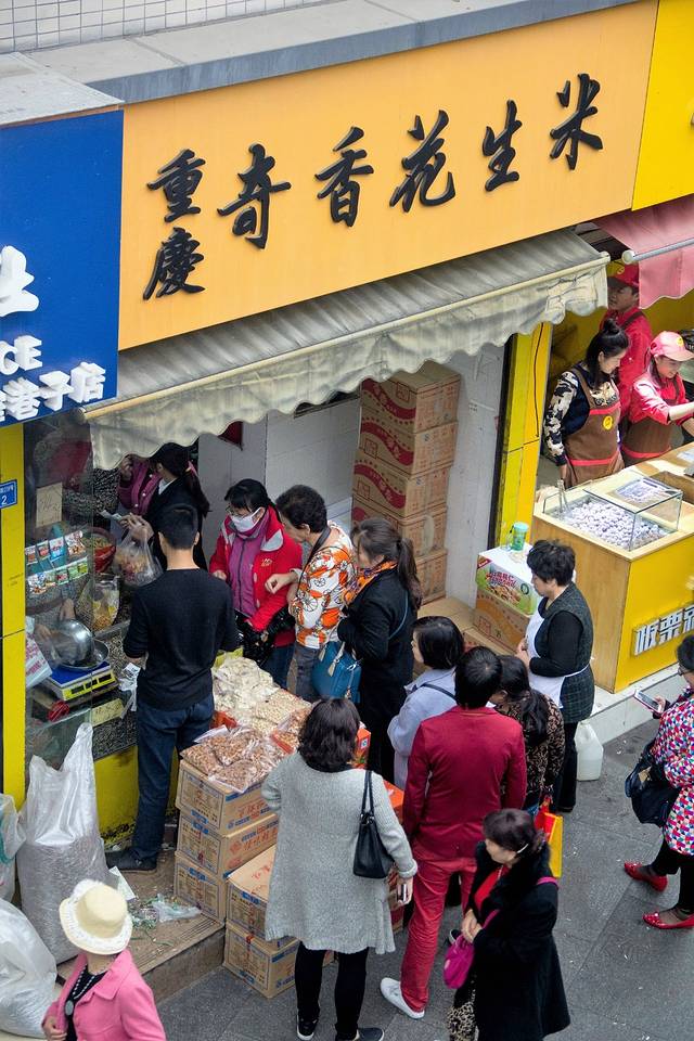 宽窄巷子对面,“奇香花生米的生意就跟宽窄巷子一样,从来没断过”,朋友说。开了几十年,招牌早就是响当当的了!