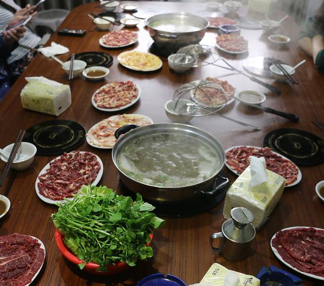 锅起,水开,下肉,涮几秒,颤悠悠的小鲜肉,就已经越过舌尖,哧溜滑过喉咙稳稳妥妥地落入觅食者的胃里,除了叹一声满足,已无多余的语言,因为再不投入下一碟的战争里,就有可能错过最好的部位。