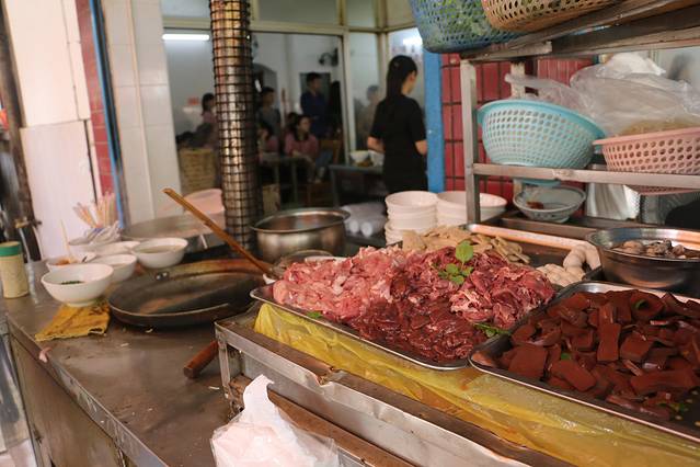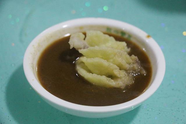 来潮州必吃的一家老字号,本来只有一家,后来因兄弟分家,一条街上就有两家了。但是潮州地胆推荐的是其中一家对着湖心亭的“镇记老尾牛杂”,别看下午时分人迹寥寥,据说早上排一个小时也未必能吃到。而且以前老板更任性,开到中午12点就收市,要吃只能等明天了。也许现在是多开了一家,所以我们才有可能在下午错峰享受到这美味。