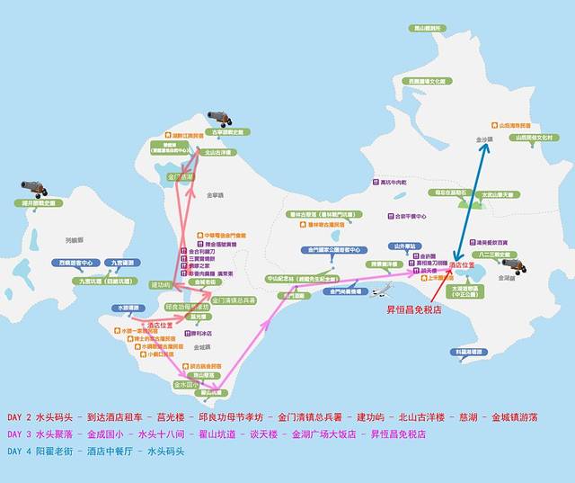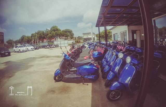 在金门的交通和台湾一样,电瓶车是最好的选择(这里租汽车需要国际驾照),旅店老板给我们推荐了一家租车的,说服务比较好,会开车到旅店来接你们去租车行。蓝色的是大马力,可以开到45-60码,1000台币一天,粉色的小马力,大概适合2个女孩子骑,30码左右,800台币一天。如果你第二天要换住宿,提前和老板说,他会统一在上午把你的行李接过去送去下一家旅店,当然前提是你要按时整理打包好你的行李,这一点我觉得是客户体验感极佳的一项服务,免去了自己搬运行李的烦恼