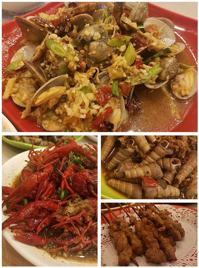 这是团购的分量,只要80块,就有一份龙虾,花蛤(或者海瓜子),钉螺,肉串。建议一定要吃花蛤,超级肥没有沙,这在我大宁波也好久不曾吃到这么壮的花蛤了,而他们的海瓜子不是我们这儿那种橘黄色壳的海瓜子,所以没有觉得很好吃,到是花蛤让我们后来又多点了2份。还有鱿鱼炒面也很吃,大概是有特殊的调料吧,和我在菲律宾吃过的那种海鲜面的口感极像,总之就是很诚恳的一家店,大赞