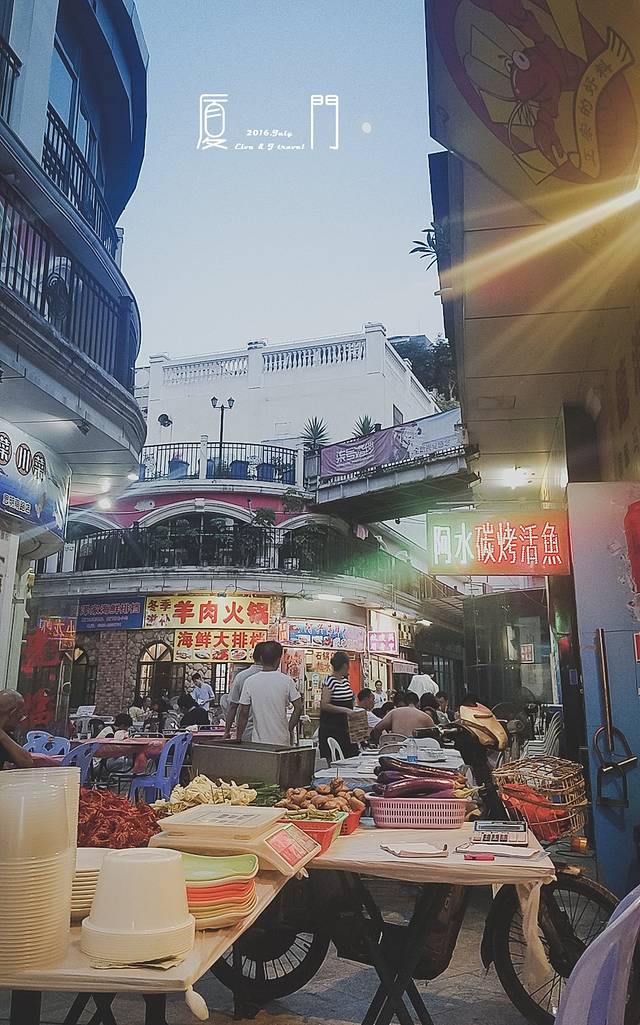 六年前,曾厝垵这个小渔村还没有火,这次入住了这里,一点也不美好。拉着箱子穿过满是摊贩的小巷,偶尔店家为了博眼球还会逗说,啊呀,谁的钱包掉了啊?而然我还居然真的回头了!上个月在台湾,前几天在金门,被湾湾人民的礼貌善良优待惯了,这里小贩的一句欺诈就让我深刻体会回到天朝了,这种感受真的很不好。而直男听了几天湾湾妹子酥麻的口音,在看看现在两耳充斥的各种脸红脖子粗的谁声音大谁厉害的叫卖,实在缓不过来
