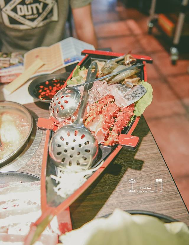 金城镇上有很多餐饮店,中饭找了家看上去空调很给力的火锅世家,双人套餐价格很实惠,分量很足,还有帝王蟹。值得一提的是这里自助台上的烧仙草饮真的很好喝,佳哥是个仙草控,每次点COCO都要让她多放点仙草,而这家店的仙草让他对台湾的美食越来越痴迷,埋怨我上个月不带他去台湾