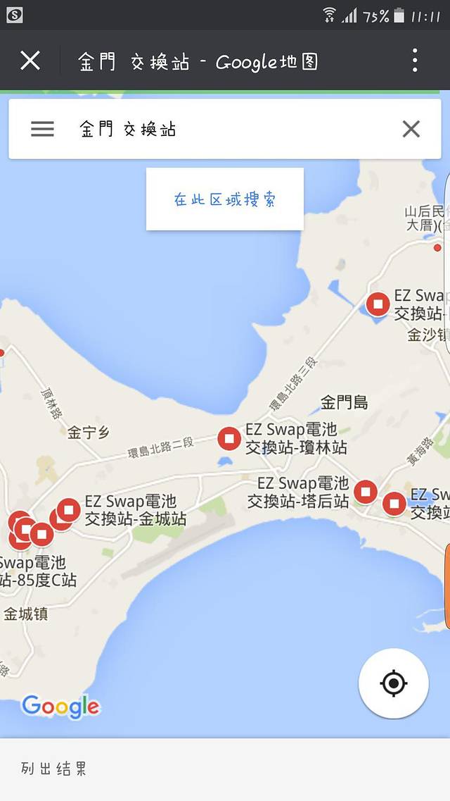 关于换电瓶的问题,老板给了我们一个网址,打开可以搜寻到整个金门电池交换点的位置,非常方便,刷卡就能自助换电瓶。这个服务我上个月在垦丁可没有看到,只能默默等电充满