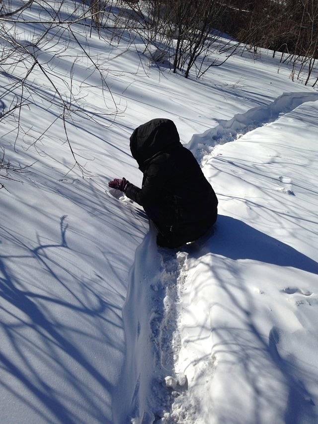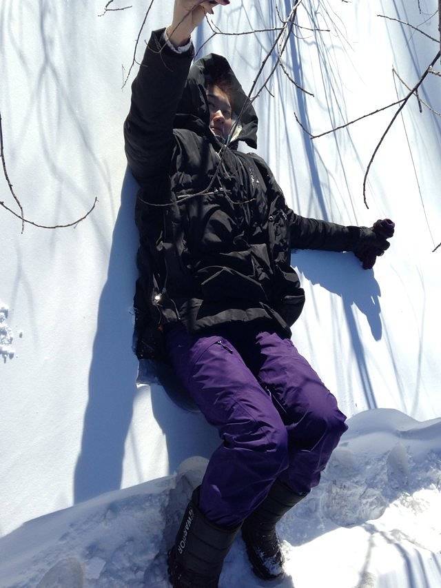 又开始闲逛模式,拍照,玩雪,想个疯孩子,特别想把自己埋在雪里,但是才埋了半个身子,雪已经近靴子里去了,一股透心凉……