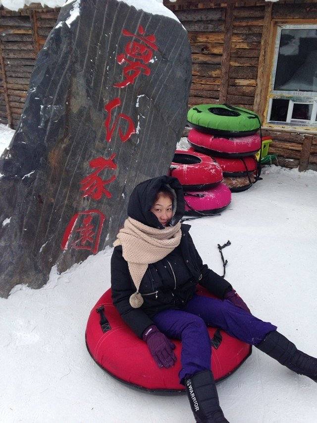 这里玩还不够,又去租了个雪圈,溜雪圈去了,做在雪圈上,找个小抖的山坡溜下来,哈哈,挺刺激的。
