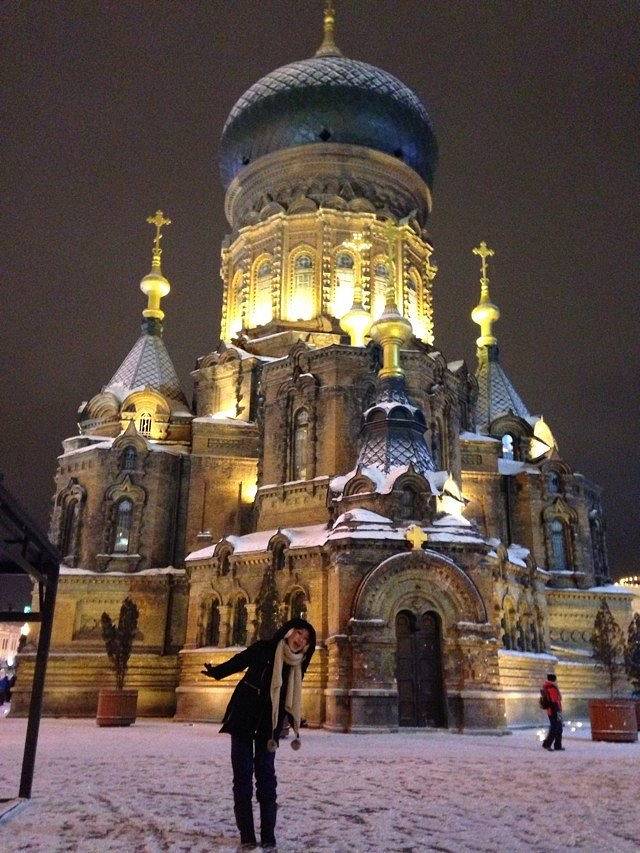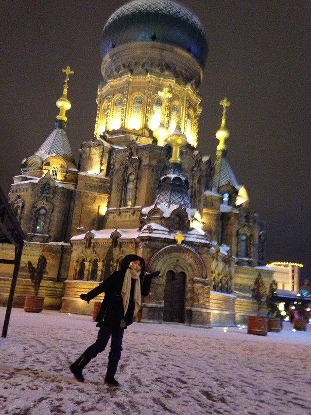 圣索菲亚大教堂位于哈尔滨道里区透笼街88号,是一座典型的拜占庭式建筑,距离中央大街不远,去中央大街的时候不妨顺便过来看看,建筑红砖绿瓦,典雅大方,尤其是盘旋在上空的鸽子,仿佛身处俄罗斯,充满了异域风情。而晚上的圣索菲亚,灯光亮起,在黑夜的衬托下又是另一番景象,进去教堂里需要购买门票:20元,里面是关于哈尔滨的建筑展览。