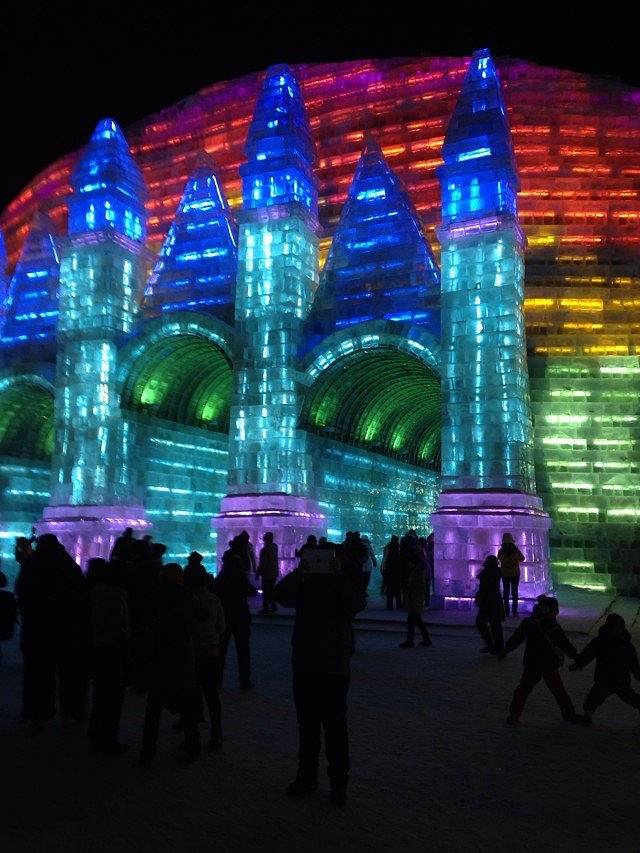 我是真的被冻坏了,哈尔滨黑的很快,基本下午5点就开始天黑了,所以6点左右,冰雕灯就开放了,这之后便人潮汹涌啊。。。