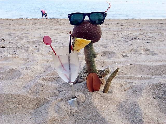 炎热的午后来点冰镇饮料,酒店的沙滩上去晒起还是很惬意。沙滩上的耍事除了游泳还可以看见暹罗猫爬树,小猫勇斗小水蛇,用沙把自己的脚埋了,做按摩阿姨马杀鸡完了之后提起小桶在岩石边抓螃蟹。。。。。。我抓到了一只小寄居蟹,第一次看清楚到底它长什么样子。