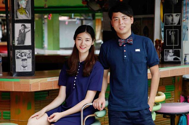 酒吧老板是个友善的外国姑娘,看到小夫妇穿着婚纱,她很热情的祝贺了他们新婚快乐。她说,你们看起很漂亮,在这里拍结婚照挺特别的,我想我要给你们打个折~~来的时候我发现在靠近海边的位置还有一座院子,应该是刚营业没多久的客栈,环境不错,后来才知道这个院子和酒吧都是这个姑娘的。由于时间仓促又在工作中没有去客栈拍照,我准备再去苏梅岛就在她家住住,因为我很喜欢她的白色的酒吧和沙滩音乐。