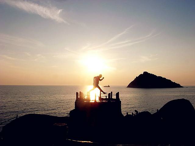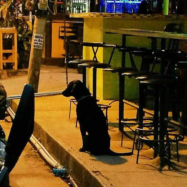夜晚来临的时候,我们在海滩散步,听到远处飘来音乐声。跟着声音一路找过去,从海滩到大街上再绕过了几条人迹罕至的小巷子,终于找到了音乐的源头。靠着海边岩石而建的一个小酒吧,有点像哥布林镇,除了我们几个就没有一个游客,玩耍的大部分是当地人和一些常年厮混在岛上的老外。浪潮的声音混杂着音乐声,大家愉快的喝着啤酒,简易的台子上还有两个老外在声嘶力竭的唱着摇滚。
