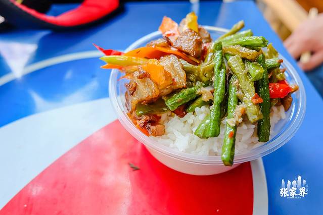 由于前一天起得早睡得晚,导致我俩今天早上实在起不来,一觉睡到10点多,还好今天只有一个天门山景区,不算太赶,所以只好早中饭混合在一起了,在纬地酒店的楼下就有很多小饭馆,我们随便找了一家炒了几个小菜吃,值得一提的是来张家界旅游,腊肉是一定要品尝哦,真的味道很不错。