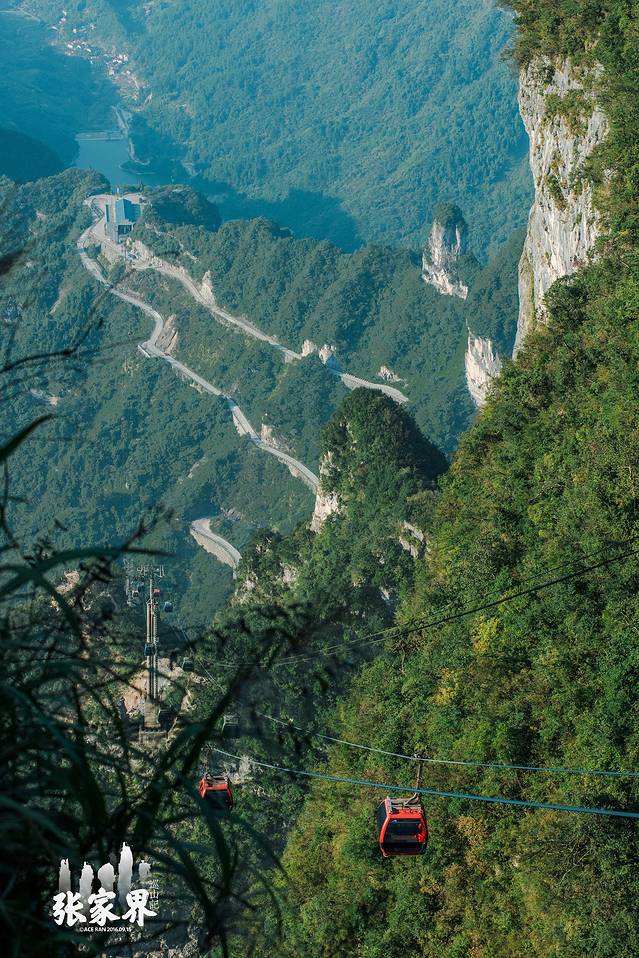 在我看来张家界完全就是一个治疗恐高症的地方。当徒步爬上通往天门山洞的999阶天梯,才知道又成功挑战了一个自己的极限。再乘坐全亚洲第一高的山洞扶梯到达山顶,怀着忐忑的心情走完了离地面400多米高的玻璃栈道。又乘坐了森林悬空小缆车,还有世界第一高落差的索道,看到如此壮观的99道弯的盘山公路,虽然很累但感觉也很值得,真是应了那句话“不逼逼自己怎么知道自己做不到”。