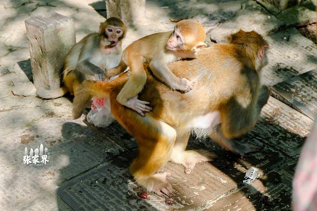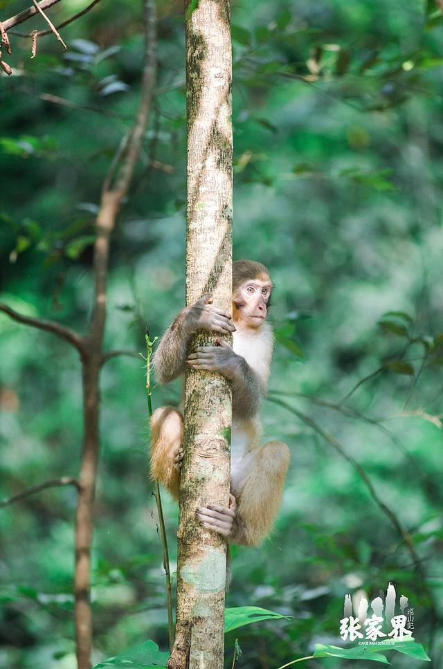 能够这么近距离的观察这些猕猴,很是难得。野生的猕猴和圈养的不同,漂亮可爱,干净整洁,充满活力。由此可见张家界的自然生态保护的应该非常好。