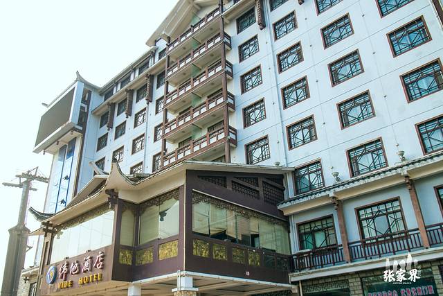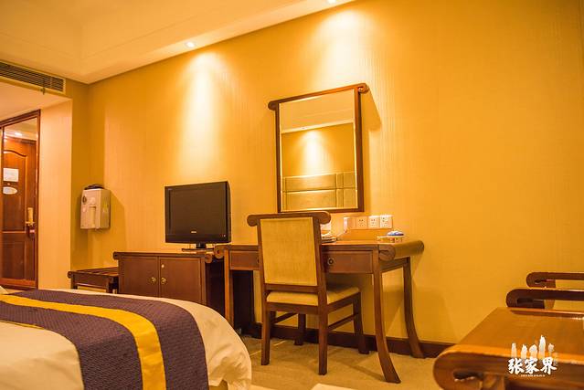 DAY1(9月15日、17日):【张家界纬地酒店 】两晚豪华大床房。位置蛮好的,就在天门山索道的对面,去天门山景区直接步行过去就可以了,索道线直接架在酒店上空,出行相当方便,距离荷花机场也近,而且门口、马路对面就有公交车站,4路公交车直接到有机场站,下站后,直走再左转就看见机场航站楼了,来去都方便,马路对面直接有“火车站--武陵源”小巴车,全程12元,武陵源汽车站距离张家界国家森林公园标志门门口就2公里,不高兴走路,武陵源汽车站那边还能坐1路公交车,直接送到门口。选择纬地酒店在来去交通上节约了不少路费,也不浪费时间。缺点:早餐略单调。不过酒店旁边有一条小街也有很多小饭店,吃的比较多,尤其是晚上各种烧烤小吃非常多,也很热闹。综合整体感觉绝对对得起这个价格,感觉超值,很满意。