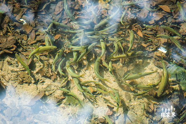 溪水清澈见底,看到好多小鱼在水里欢乐的游来游去,这是金鞭溪独有的金鞭溪鱼,他们会按照这边的做法做成独有的湘西特色小吃。