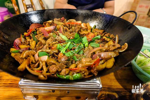 张家界街上可以看到到处都是三下锅。所谓的三下锅其实就是一种很方便的干锅,它是由三种主料做成的炖着不放汤的火锅。推荐干煸肠子、干煸核桃肉和湘西腊肉三种混在一起炖,吃的同时还可以点一份酸萝卜,又脆又酸。
