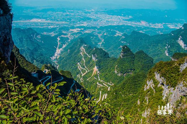 位于张家界市城区以南8公里的天门山,是一座神奇的山。天门山属喀斯特地貌,是一座四周绝壁的台地型孤山,主峰海拔1517.9米,在天门山东侧有一个南北贯通的天然溶洞,洞高131米,宽37米,深约25米,被称为天门眼,天门山因此而得名。天门山不仅自然风光壮丽,也凝结了人类智慧的结晶:环绕山体的99道弯的盘山公路,天门洞前的999个台阶的天梯,山体隧道内提升高度340米的手扶电梯。而更让人印象深刻的,是山顶悬崖边上的玻璃栈道和鬼谷栈道。来到张家界,建议一定花一天时间去天门山看看