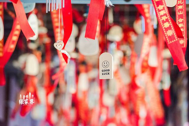 整个桥上挂满了祈福的红飘带,特别壮观。