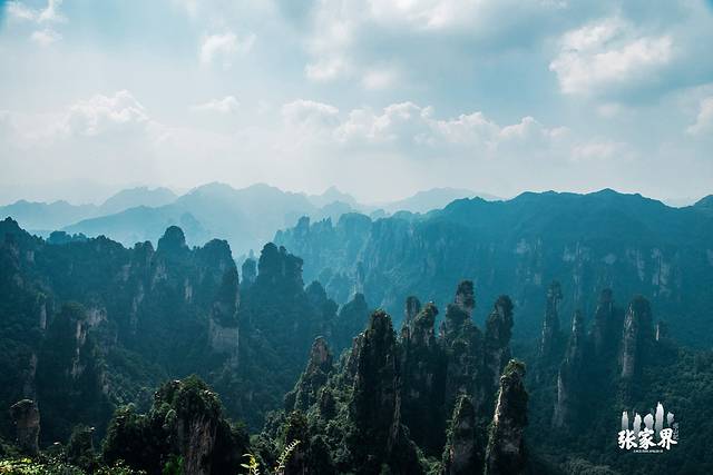 站在袁家界景区的观景台上,三千奇峰尽收眼底,雄险秀野,神态各异。峡谷深处,千百根石峰石柱奇伟突立。峻峭之石,如英武将帅;嵯峨之峰,似勇猛壮士。有声有色,若静若动,形象逼真,呼之欲出。