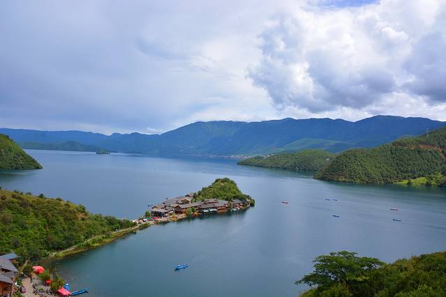 泸沽湖的宣传照就是在这里拍的,湖中心便是最美的里格岛