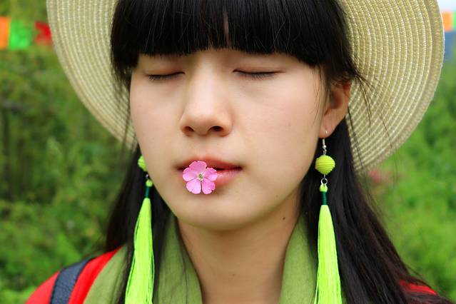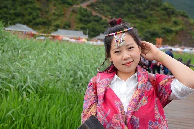 戴上摩梭姑娘编织的耳环,今天我也是摩梭族的姑娘