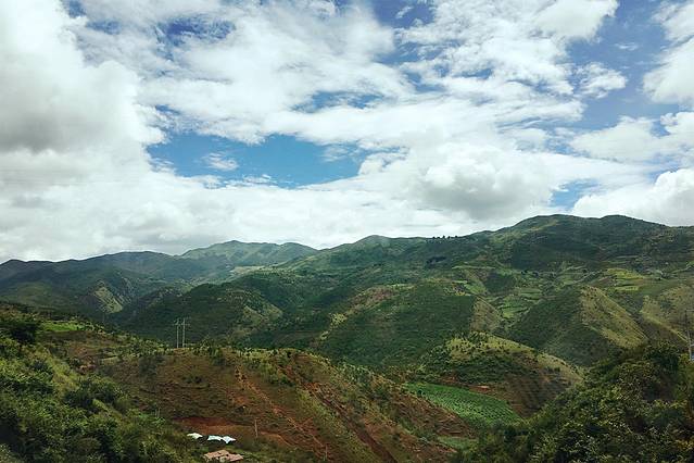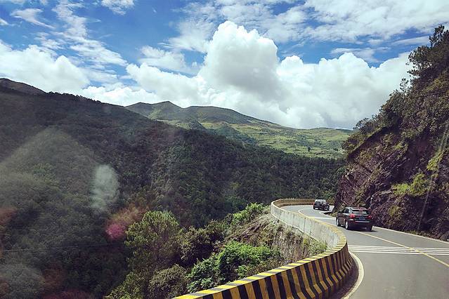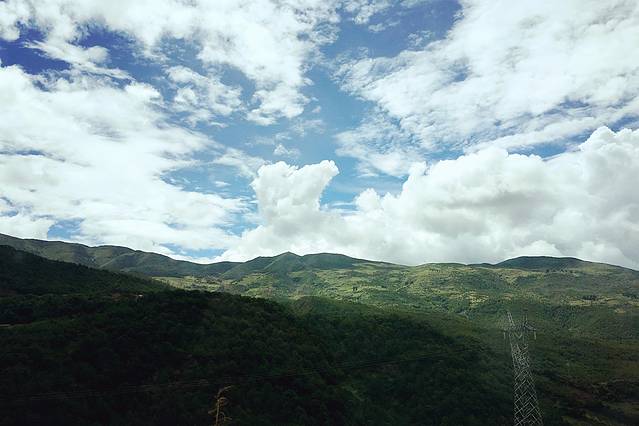大巴中途会在休息的地方停两三次,师傅会给大家提供半小时吃午饭的时间。我们在车上聊天——吃东西——睡觉,偶尔醒来看个风景,只希望能快点到站,时间太长太磨人吶~~