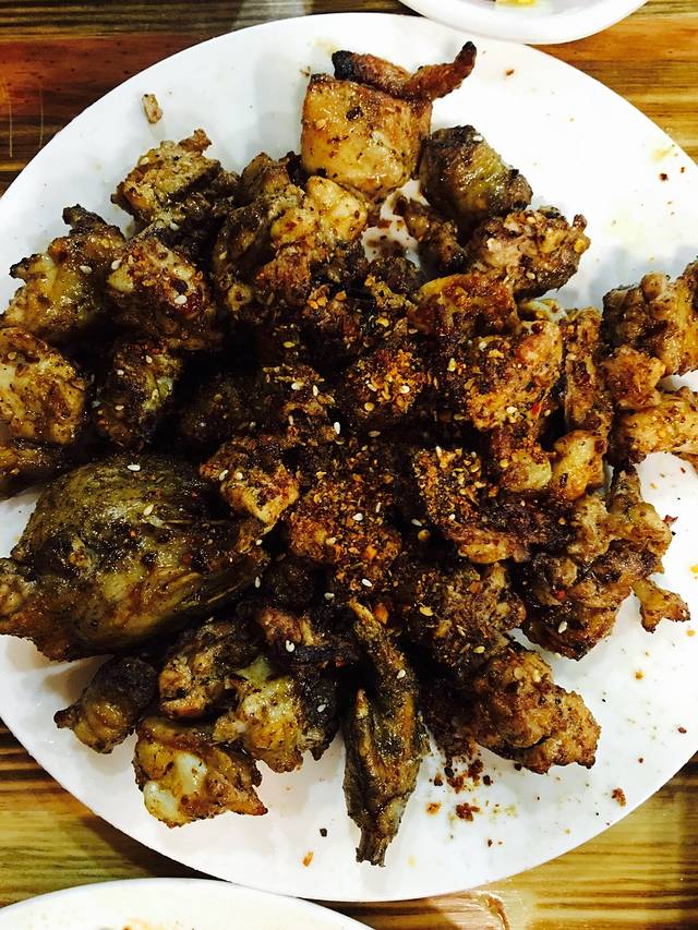 客栈门口有很多烧烤,烤鸡和烤乳猪。舟车劳顿,肚子也饿的不行,放下行李,一心想着吃吃吃,洗了把脸就匆匆出门~~