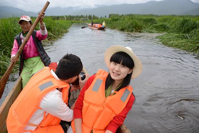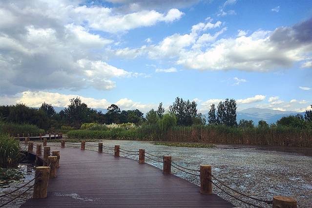 码头的位置在草海和亮海的交界处,一边是青青绿草的世界,一边的清澈见底的湖...据说在这里观看日出和日落都是最佳地点,没有机会尝试。