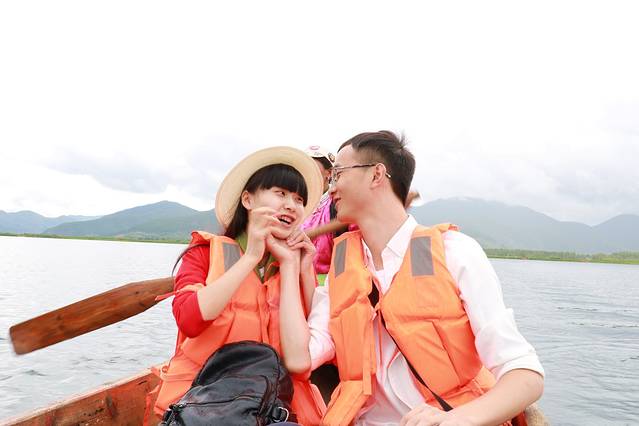 他们的船都已经坐满了,而我们的小船,加上划船的小哥和他妈妈就6人。