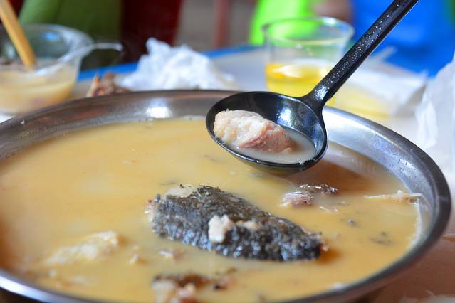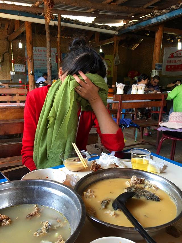 鱼汤需要等很久,一锅只能烧3-4条鱼,不放任何味精,全靠松茸吊鲜味儿,老板说,碗不干净没有资格喝他的鱼汤的,他的鱼汤好喝到哭~~事实证明,真的很赞,午餐,我们没有吃饭,全吃鱼和土鸡了~~