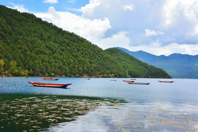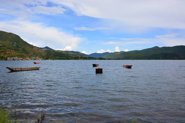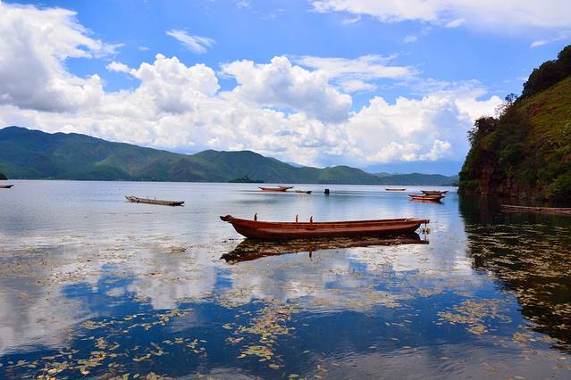 清澈的湖水令人感叹,那飘飘荡荡的水草清晰地呈现在你的眼前,你不得不佩服摩梭人对这片水域的热爱和呵护。