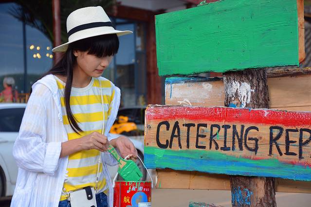 今天的行程安排是骑行至女神湾,看到美景随停随拍,中午在好人小吃午餐。我和佳丽租的自行车,因为不会骑小电驴,这累哭了我们,一路都是上坡,边推车边骑车好久才到达终点。俊哥她俩骑着小电驴跑得飞快,他们前面开道,我们后面扫尾。两辆自行车,一辆电驴,一共160元。