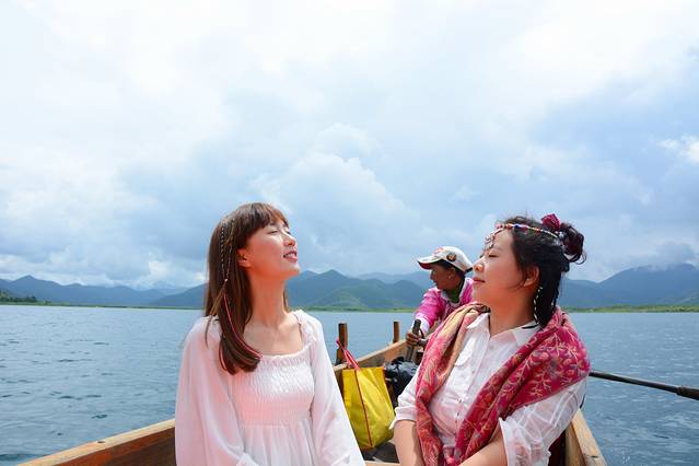 感受船只穿过湖心到达彼岸,风穿过发丝带来的清凉