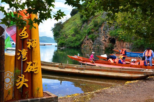 神秘的摩梭男女走婚的故事还在脑海萦绕,小小的猪槽船早已静静的靠在水边停靠.......