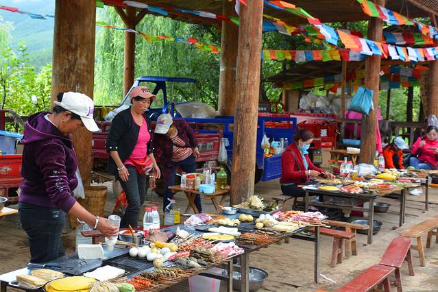 不论是在哪个景点,路旁就会有很多当地人摆的烧烤摊,这也算泸沽湖的一个特色吧