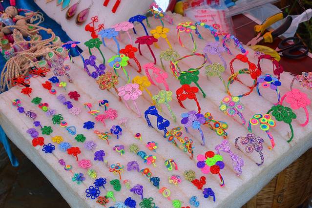 路旁手工能巧的摩梭族妇女们卖着手编的耳环、戒环和手环,很是精美呢。价格实惠,手环戒指一套5元,我忍不住买了几套作为伴手礼。