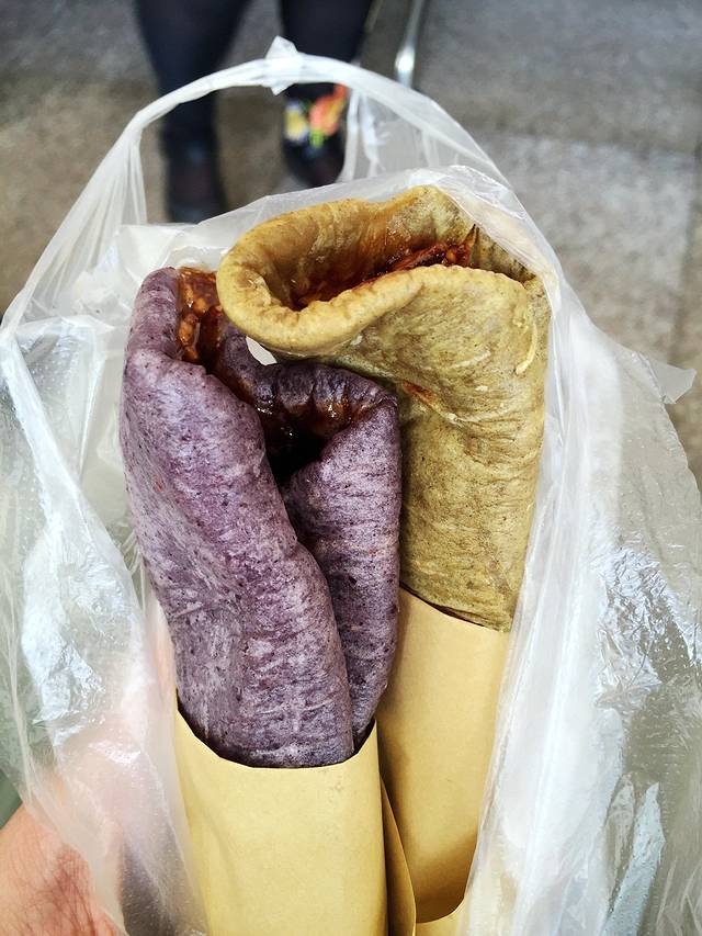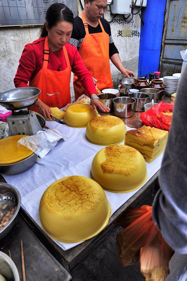 最喜欢的小吃之一,烤饵块,像是一张小饼,饵块做的,有紫米的和苦荞的两种。非常喜欢黏诺的口感,中间抹上花生辣椒还有酱料,非常的好吃,非常的好吃,非常的好吃。这家是在大理旅游客运站斜对面买的。