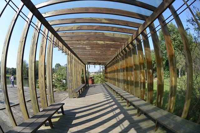 而今的河道两岸花红、柳绿、芦苇丛生,市民们在凉亭里悠闲的看书、垂钓,充分享受晚秋的美好时光。