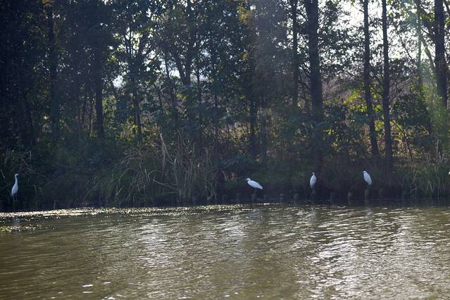船行处掠起惊鸟一片。碧波荡漾的湖面上,三五成群的野鸭在觅食;岸边的野草芦丛中,白鹭在悠闲的散步;透过清澈的湖水,看到小鱼欢快游动的身影。