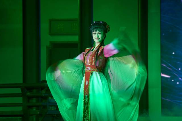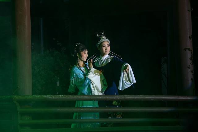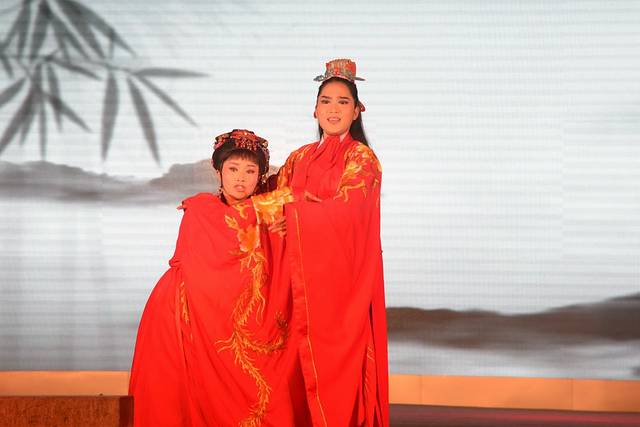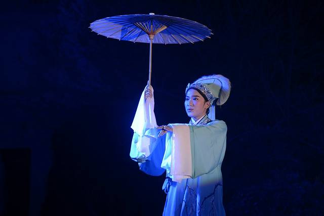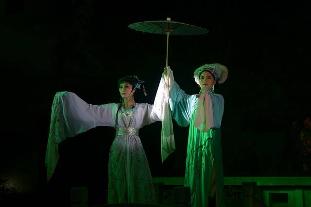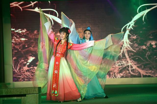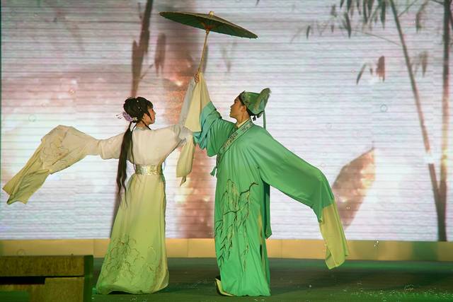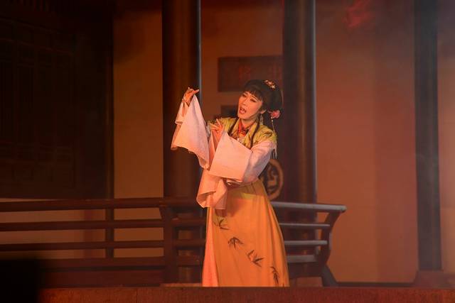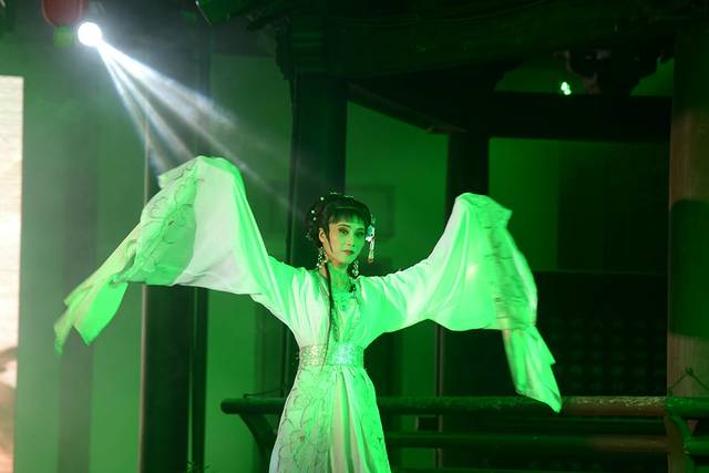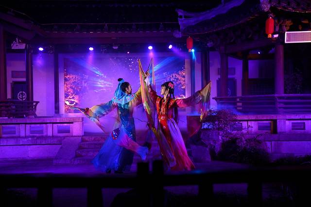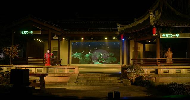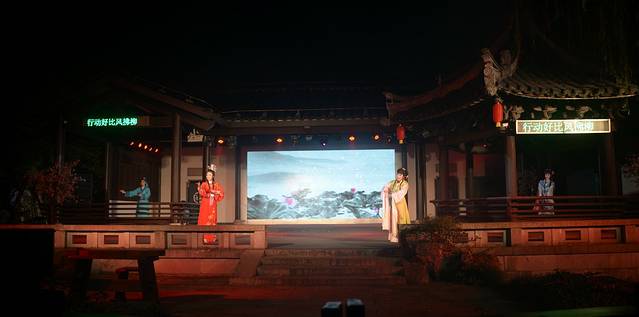 今晚的“沈园之夜”演出的主题就是陆游与唐婉的爱情故事,实景舞台上午美、灯光、效果绚丽,传统越剧中融入了现代音乐的旋律素材;越剧表演中插入了民族舞蹈的成分,更具有观赏性。