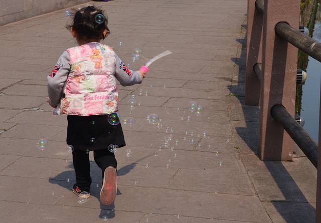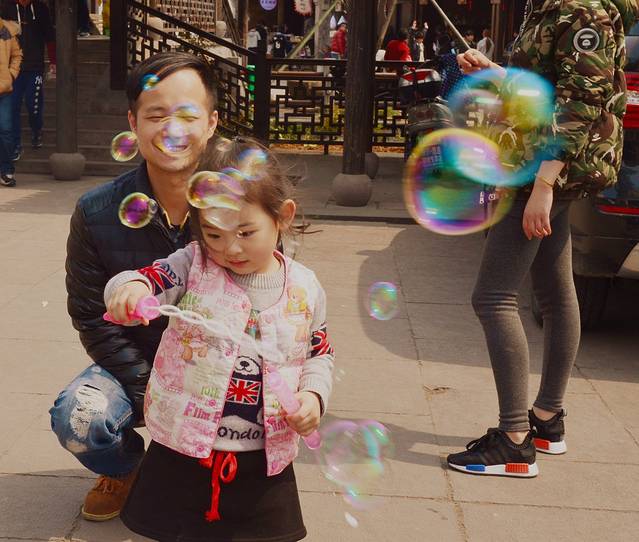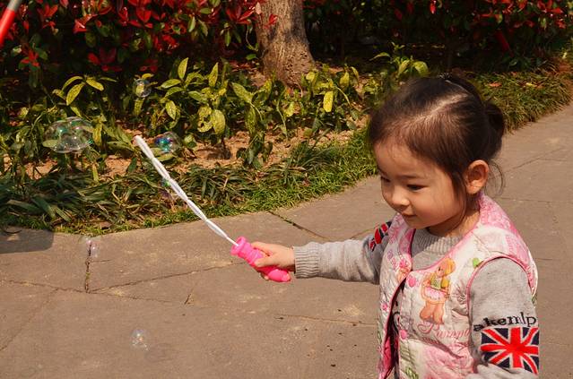 人儿比景美,泡泡真是太好的道具了,五光十色的~ 要不是后面有猥琐二货,画面会更美