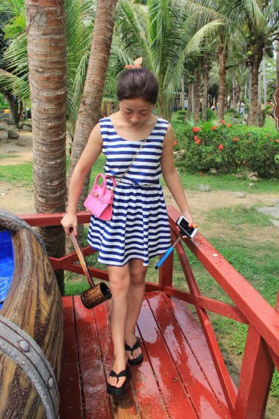 等收拾好行李,换好衣服后~ 我们去往【大东海】,准备在那儿泡一下午! 因为酒店是在鹿回头,相对来说比较偏~ 出租车不是怎么好坐! 到了大东海后,租了寄存柜,准备下海啦~~ 今天比较聪明,没有带隐形眼镜下海!
