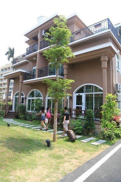 我们原本订的房间是在二楼,属于阳台房~ 但是可爱的工作人员给我们免费升级为套房! 在我们那栋房子的旁边有餐厅,整个酒店也有水吧,游泳池!