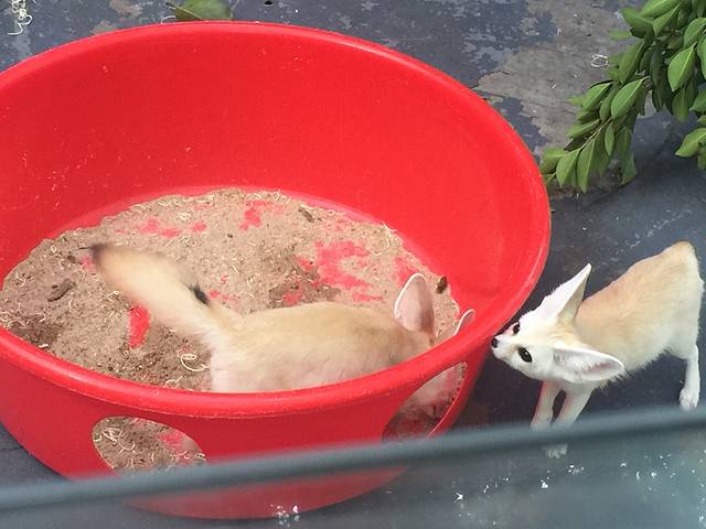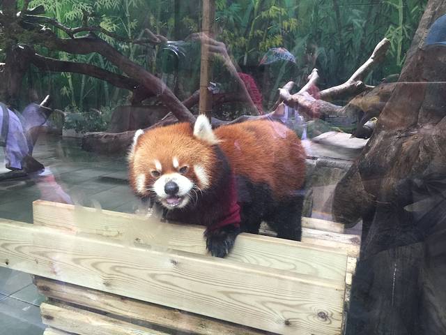 小熊猫,一直盯在食槽那边,吃完了才抬头的
