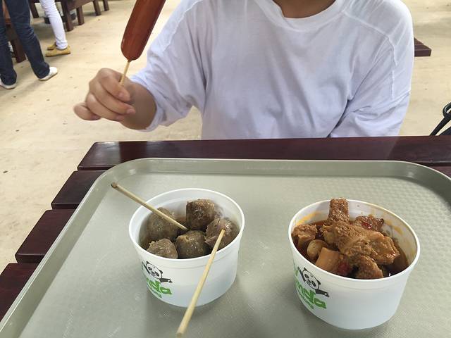 园内的萝卜牛肚、猪肉丸、烤肠,价格还行,味道不错。。。后来还买了个烤鸡,98块,味道一般。。。最后本来想吃晚饭的,但是园内的餐厅全部打烊了,是在马戏那边吃的