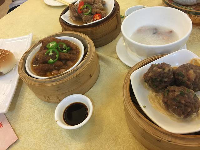酒店走过去,大概7、8百米吧。蒸品很不好!因为是放在一旁点什么拿什么,虾饺的皮都烂了,味道不好,其他点了才上的比如肠粉和粥味道还不错。